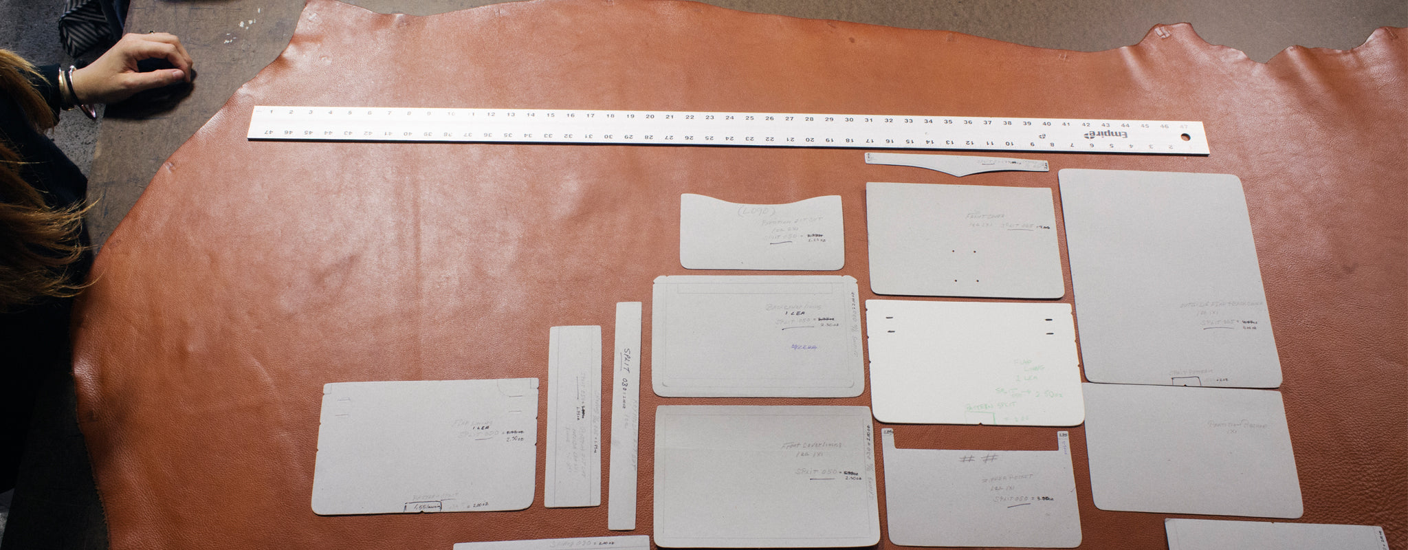 So we've got our whole cuts of uncorrected vegetable tanned leather laid out before us. What's next? Cutting. Cutting sounds easy enough, right? In fact, it's quite an intricate process, especially when only the most superior final product is acceptable to us. It's an exercise that takes much time, effort, and skill, but is wholly worth it.