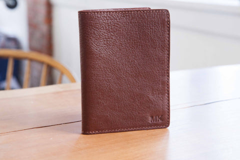 The leather passport wallet is a very nice piece and I have used it a few times since I got it last year but I was a little disappointed that my passport didn't fit per the photos as it's too thick. Be advised that if you have extra pages in your passport due to travelling a lot, or lots of visas, your passport will only fit in the left open flap and not into the two more secured sleeves that exist on the right side. It still works but is not as secure as I would have liked it to be.