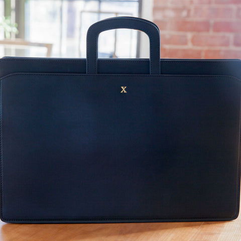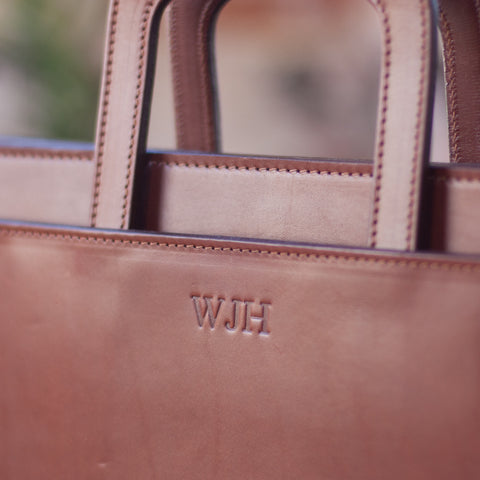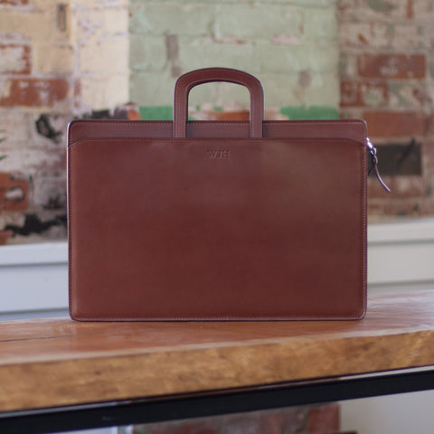 Briefcase comes across as very high quality, well-tailored but not overly fashionable. Handles collapse for a clean-looking folio appearance.