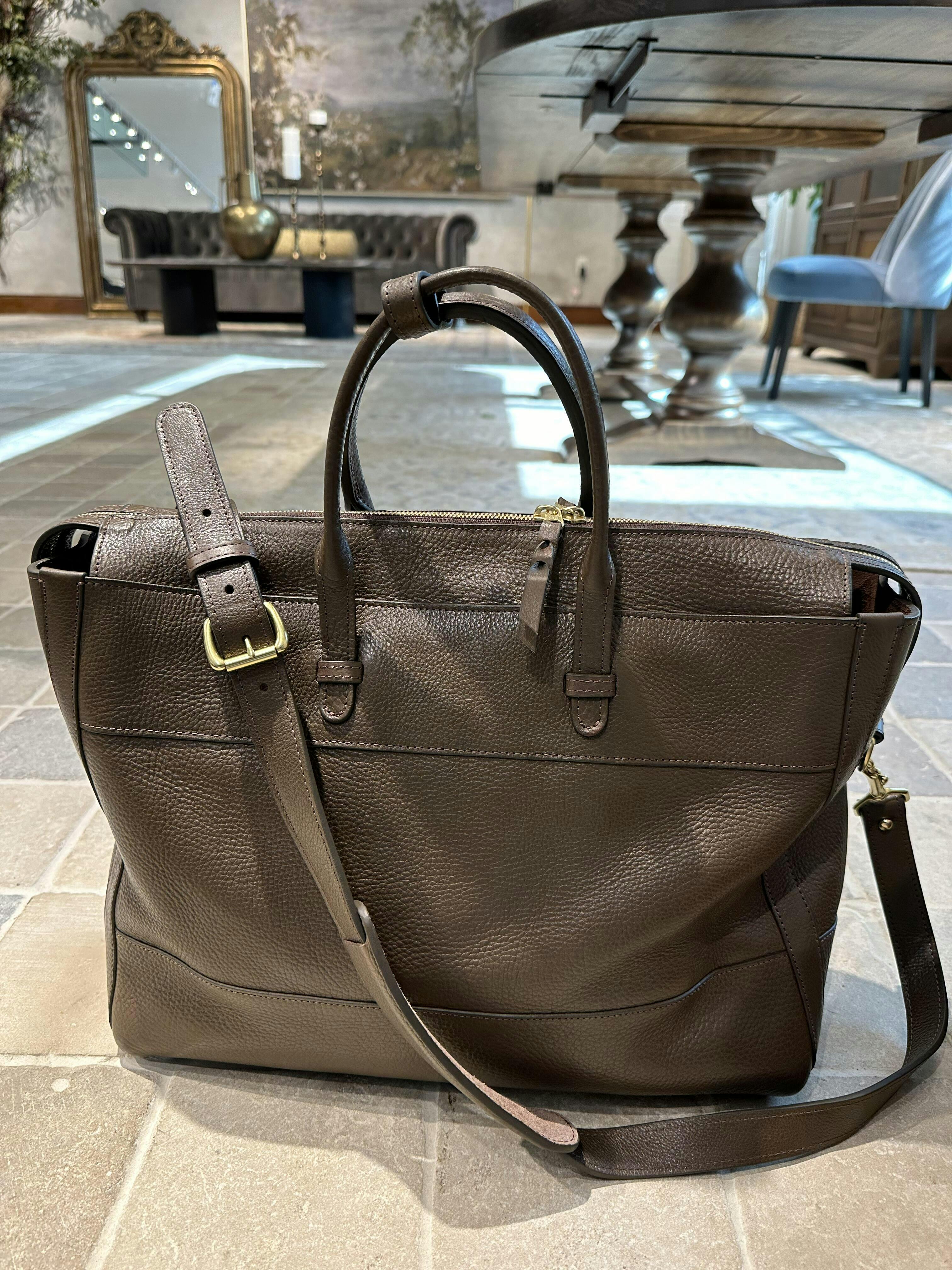 This is a lovely bag - well proportioned and with a timeless quality. It is a bit on the heavy side - I might not choose it for carrying around on a long walk, but it is sturdy and roomy. I ordered mine with an add-on luggage sleeve so it can perch on my rolling suitcase - it will make a great personal item for carrying my laptop and other inflight items.